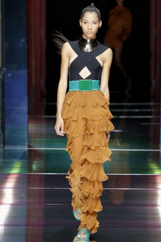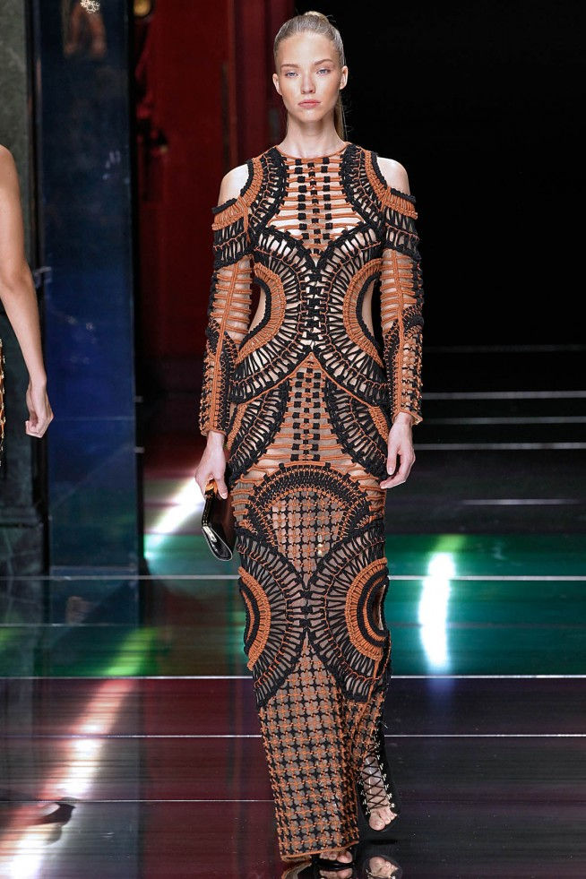 Olivier Rousteing mostrou toda a sua criatividde no desfile da coleção Balmain primavera/verão 2016 na Semana de Moda de Paris. O que se viu foram modelos coladas ao corpo, cintura marcada, transparências e decotes, tudo reunido, tornando a garota Balmain linda e marcando presença onde quer que chegue. Tecidos tramas, promovendo transparência, babados, faixas sobre o corpo formando geometrismos tudo isso reunido, fazendo um lindo e marcante desfile com uma cartela de cores com predomínio de pretos, nudes e marrons. Difícil escolher apenas alguns modelos.